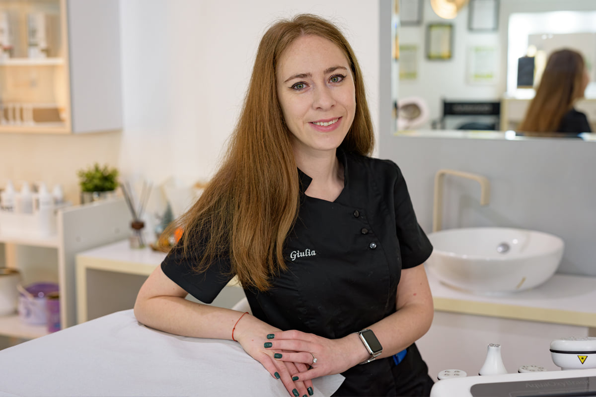 Absolventă a profilului Cosmetologie și dermofarmacie în cadrul UMFST – studii universitare și masterat, Giulia se îngrijește ca fiecare din pacientele noastre să primească tratamente adaptate nevoilor individuale, perioadei din an, vârstei, dar și să transmită principiile care stau la baza acestor tratamente, dar și rutina de după salon. Tenul adolescenților, al persoanelor cu probleme speciale – cuperoză, riduri, pete pigmentare, pori dilatați, toate au soluții la salon. Mereu prezentă la seminarii și cursuri, se îngrijește să fie la zi cu tot ce e nou în țară, dar și la marile evenimente de specialitate cum ar fi Cosmoprof Bologna.