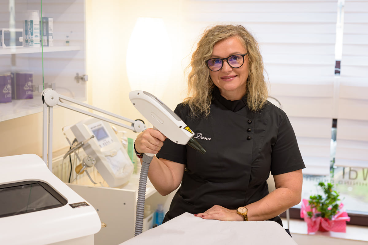Îndepărtarea tatuajelor corporale și faciale este realizată de Dana, absolventă și ea de studii masterale la UMFST, tehnologia laser fiind una care necesită atenție, răbdare și mai ales multe informații de transmis pacienților înainte și pe parcursul sedințelor.
