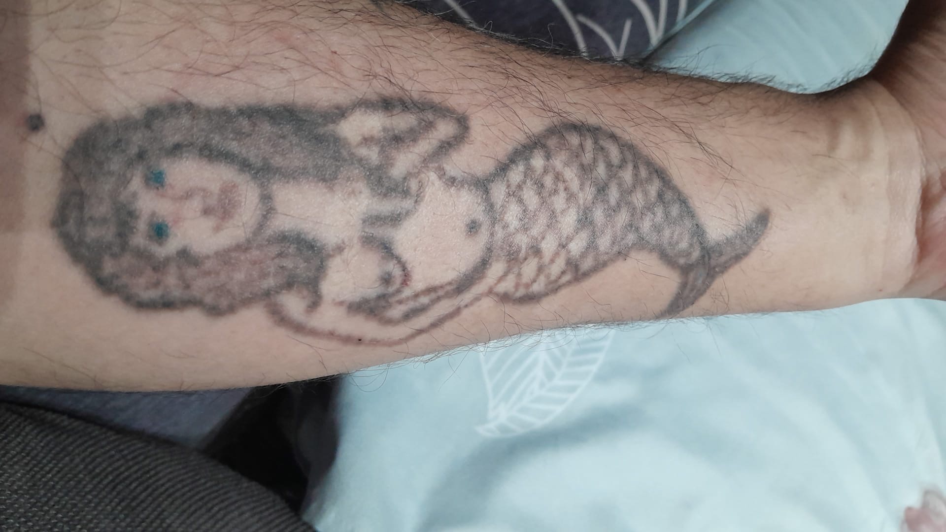 Rezultat final, tatuaj braț, înainte și după 7 ședințe