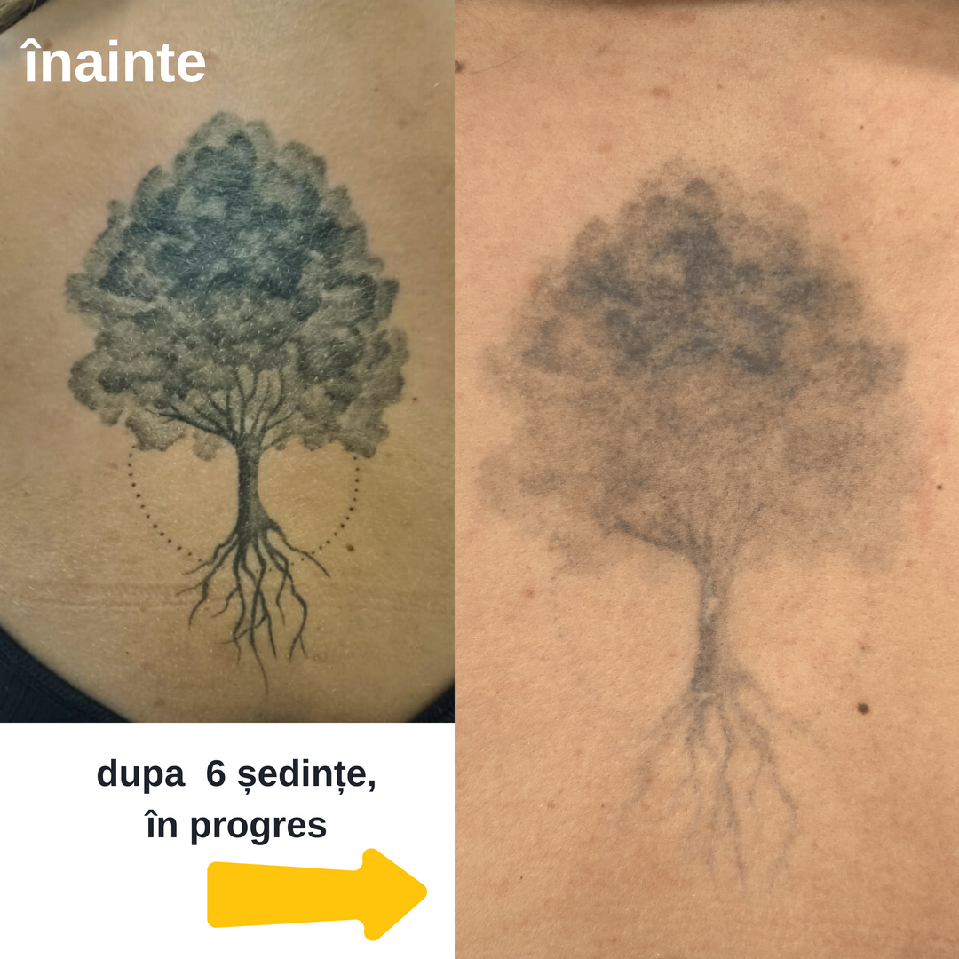 Îndepărtarea completă a tatuajului poate necesita mai multe ședințe de tratament, în funcție de dimensiunea, culoarea și vechimea tatuajului.